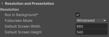 Edit - Project Settings... - Player - Resolution and Presentation의 설정을
