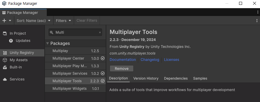 Window - Package Manager - Unity Registry - Netcode for GameObjects를 설치합니다.