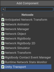 인스펙터 맨 아래 Add Component를 눌러 나온 Netcode 폴더에는 다음이 있습니다.