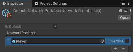 연결하자마자 플레이어의 생성을 위해 NetworkManager의 Default Player Prefab에 넣습니다.
