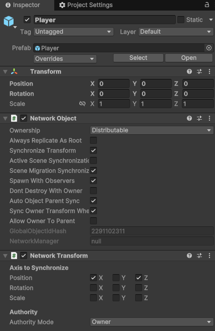 - NetworkObject: 동기화 될 게임오브젝트는 반드시 이 컴포넌트를 가지고 있어야 합니다.