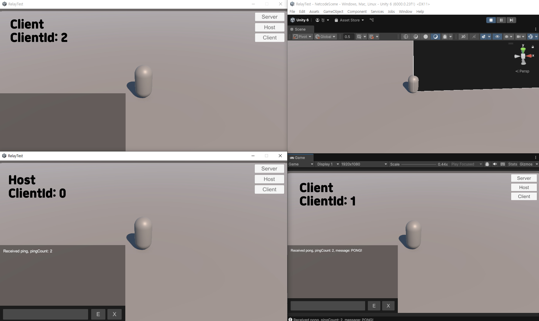 유니티 에디터에서는 간단하게 호스트, 서버, 클라이언트로 접속할 수 있습니다.