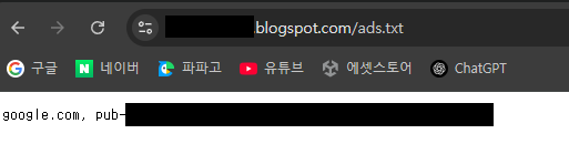 주소창 맨 뒤에 /ads.txt를 검색하면 정상적으로 코드 스니펫이 나와야 합니다.