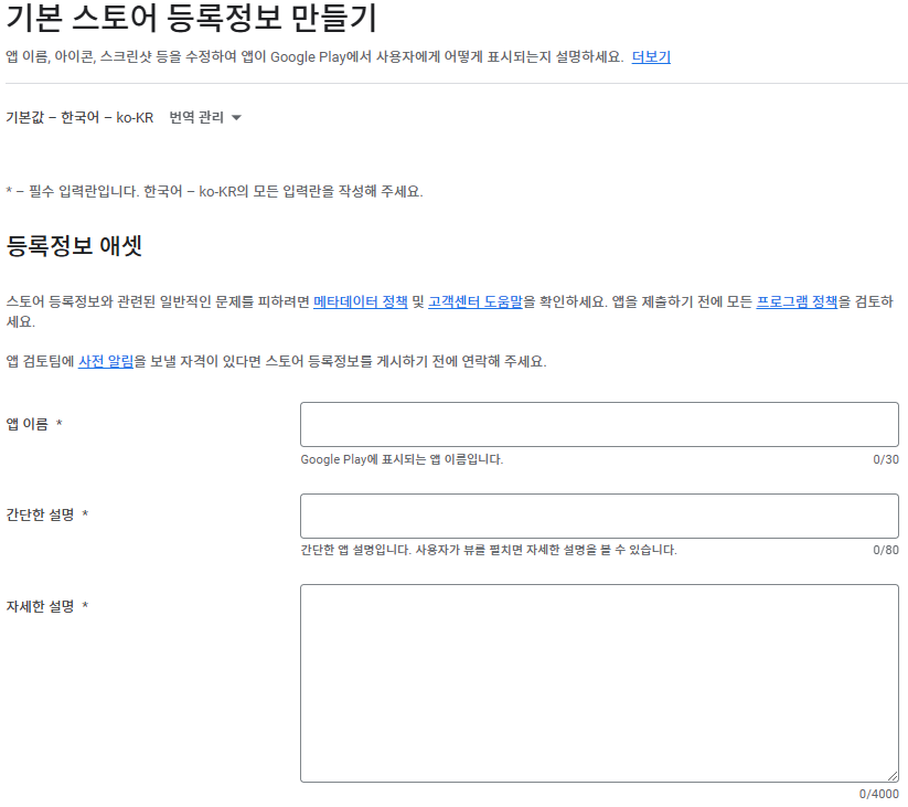 구글 플레이스토어 개발자 콘솔(https://play.google.com/console/developers)에 접근해야 합니다.