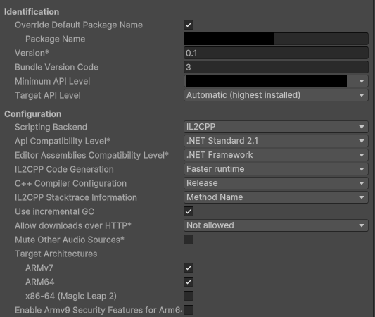 추후 앱 업데이트 시 유니티 에디터의 Edit - Project Settings... - Player - Other Settings에서