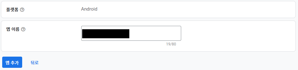 Package Name에 모두 소문자로 `com.회사명.제품명`으로 작성합니다.