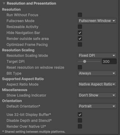 Exit Play Mode 체크해제, Target FPS 30 ~ 60으로 설정합니다.