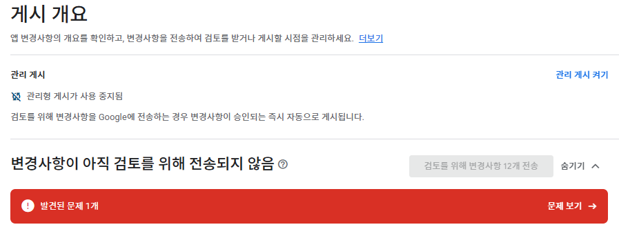 구글 플레이 콘솔 스토어 등록정보를 이렇게 나중에 수정하셨다면 바로 확인이 안되기 때문에
